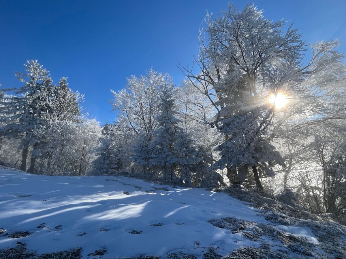 Bäume voll behangen mit Raureif. Und schon nach kurzer Fahrt zeigten sich die