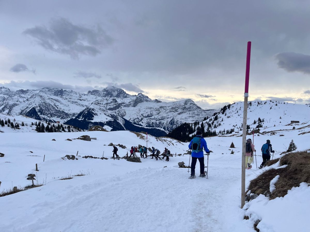 und eindrücklichen Schneeschuhtour zur Bergstation der Ruogig Luftseilbahn.