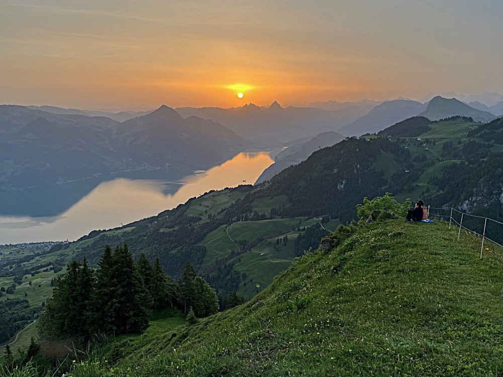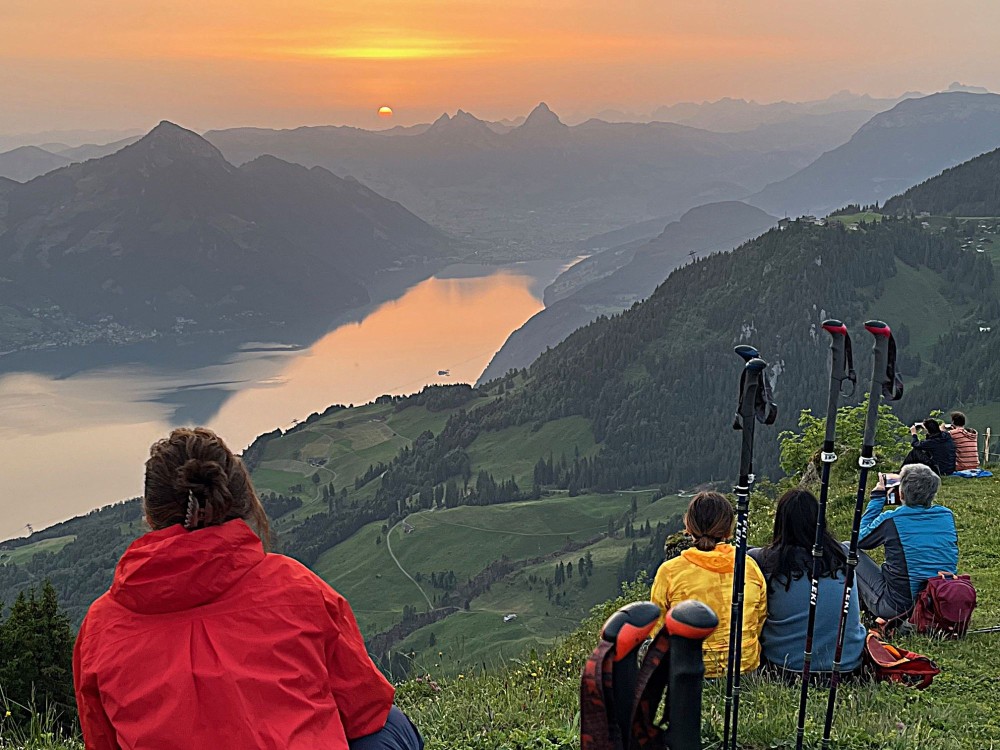 Reine Gehzeit 2 Std. Effektive Wanderzeit (Nachts mit Pausen) 2 Std 35 Min. Für die Wanderung zum Sonnenaufgang ist eine gute Kondition und Trittsicherheit erforderlich. Sonnenaufgang inkl. Älplerzmorgä auch ohne Bergwanderung möglich. 04.40 Uhr Abfahrt der Luftseilbahn LDN und weiter mit der Musenalper Luftseilbahn.